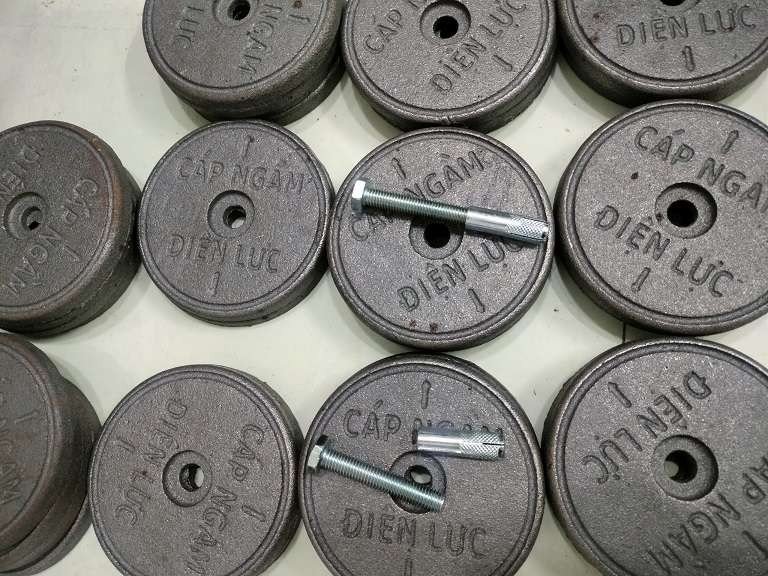 Mốc kèm theo bulon 10×100 và ốc cấy để cố định vào nền đường