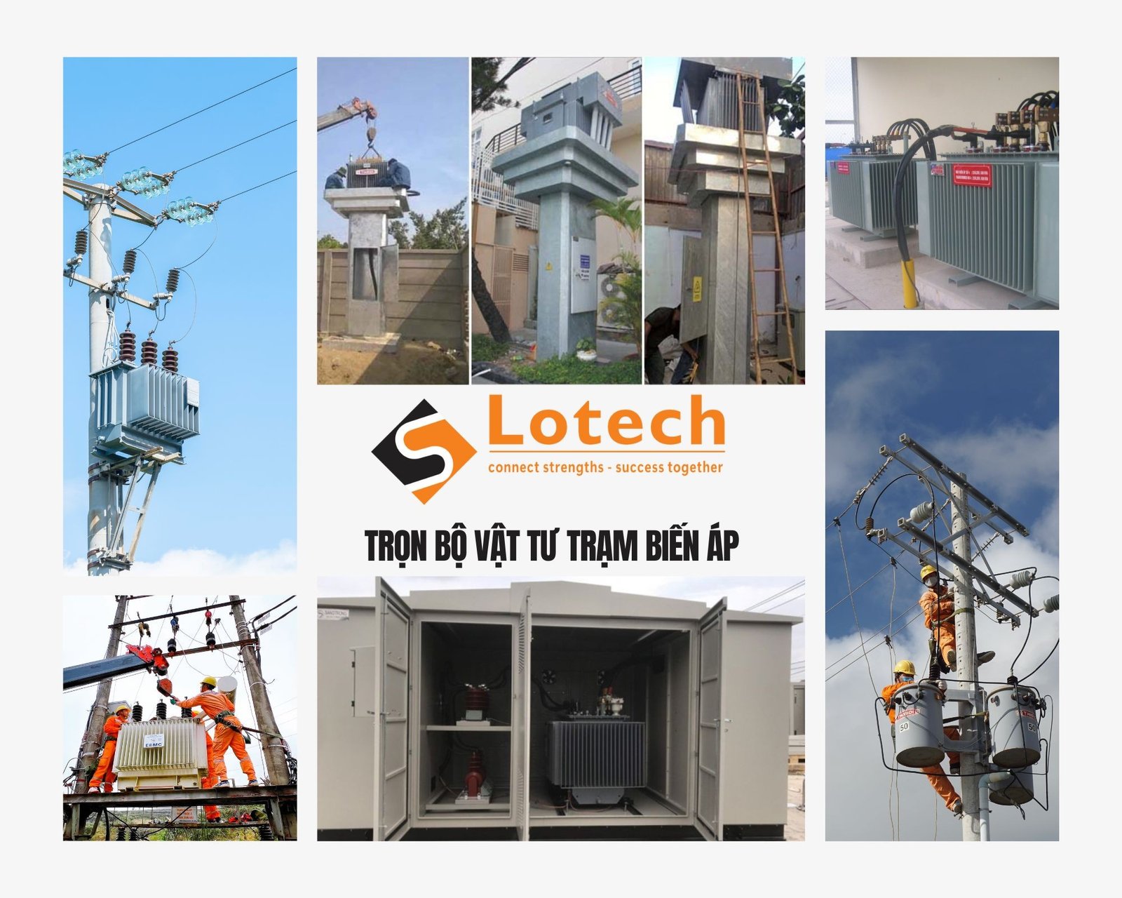 Lotech chuyên cung cấp trọn bộ vật tư, thiết bị phục vụ thi công xây lắp trạm biến áp công suất từ 15kVA đến 7500kVA: – Đáp ứng mọi lựa chọn thi công trạm biến áp hợp bộ kiểu kios, trạm trụ, trạm giàn, trạm ngồi, trạm nền, trạm treo… – Đầy đủ thiết bị như máy biến áp, thiết bị đóng cắt bảo vệ – đo đếm, hệ thống cáp điện và vật tư đấu nối trong trạm. – Đa dạng vật tư thiết bị đến từ thương hiệu uy tín trong và ngoài nước, đạt chuẩn ngành điện, báo giá cạnh tranh. Để cập nhật báo giá trạm biến áp phù hợp yêu cầu công trình – dự án, hãy liên hệ với chúng tôi.